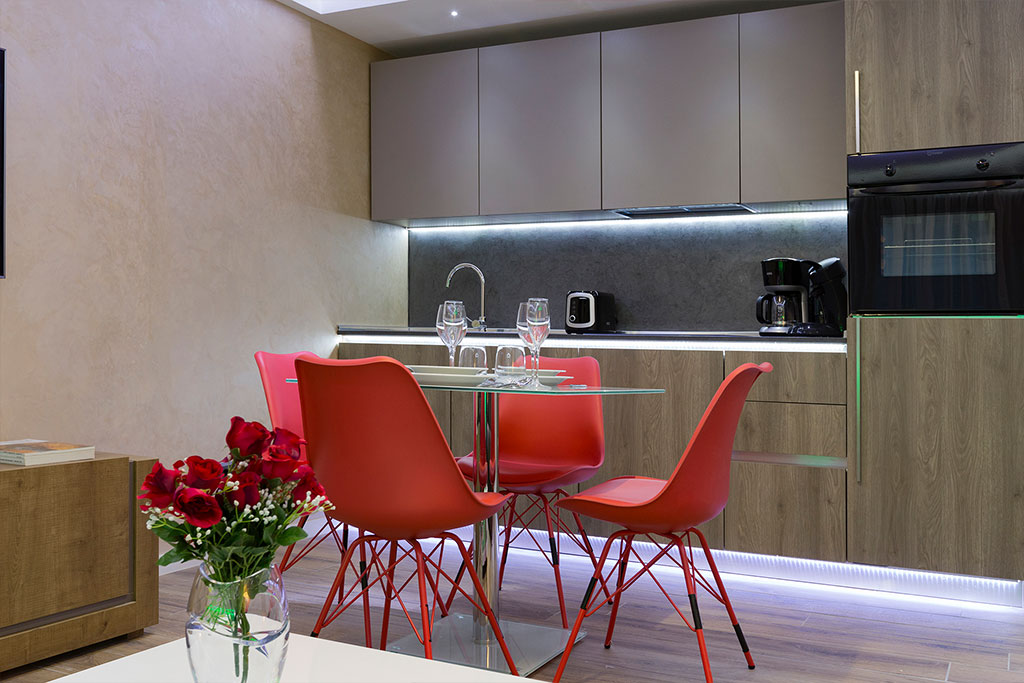Featuring luxurious fabrics and design style, each apartment at The Queen Luxury Apartments – Villa Carlotta – comes with a seating area with sofa and a flat- screen TV. The accommodation units are furnished with an American kitchen and a modern bathroom with a shower or a bath.
