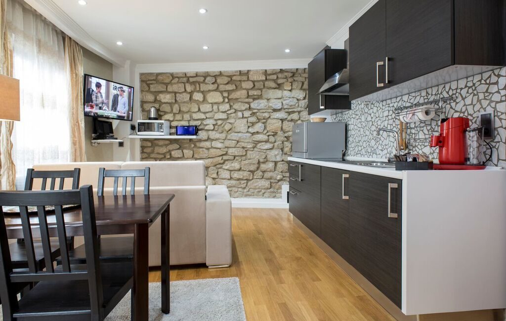 The apartment was very spacious and comfortable. The beds were great, the kitchen was stocked with all the utensils we needed. The apartment was fantastic for families, and super close to the city center (walking or bus ride).